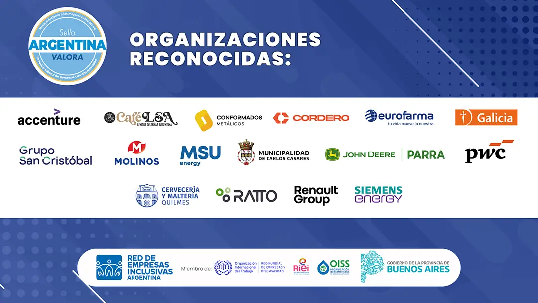 En diálogo con Diversa Noticias, Fernando Carotta Derudder, Codirector Ejecutivo de la Red de Empresas Inclusivas para Argentina y Uruguay, destacó que el proceso 2025 evidenció un mayor nivel de madurez en las postulaciones. Las empresas que renovaron el sello hasta diciembre de 2027 fueron Accenture, Cervecería y Maltería Quilmes, Grupo San Cristóbal, MSU Energy y PwC Argentina. Asimismo, recibieron el reconocimiento por primera vez Andrés Parra y Cía. S.A.Banco Galicia —primer banco en obtener el Sello Argentina Valora—, Cafelsa – Cafetería en Lengua de Señas ArgentinaConformados Metálicos SRLCorderoEurofarma Argentina —primer laboratorio farmacéutico en recibir esta distinción—, el Municipio de Carlos Casares (Secretaría de Salud / Dirección de Discapacidad), que se convierte en la primera organización pública reconocida), Renault y Siemens Energy.