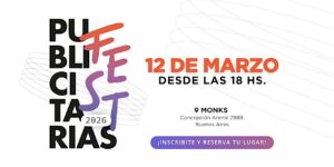 Publicitarias Fest. Cuándo marzo 12, 2026 6:00 pm - 10:00 pm Añadir al calendario Descargar ICS Google Calendar iCalendar Office 365 Outlook Live Dónde INSCRIPCIONES Lugar: Concepción Arenal 2989, CABA.