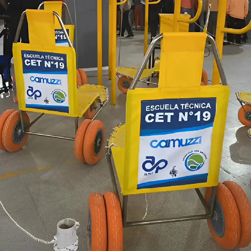 El proyecto nació en el marco del programa Voluntarios en Red, que impulsa a colaboradores de la compañía a presentar iniciativas con impacto social. Fue así como Pablo Sierra, colaborador de Camuzzi y docente del CET 19 de San Antonio Oeste, propuso construir sillas anfibias para personas con movilidad reducida, inspirándose en una experiencia que había visto en Puerto Madryn.