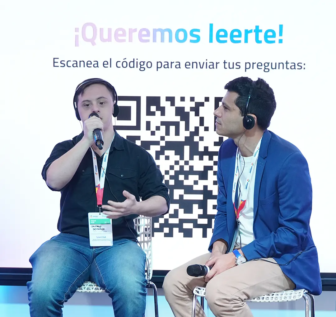 En el panel “Detrás de escena: cómo generar proyectos de entretenimiento verdaderamente inclusivos”, el actor Santiago Demarco -joven con síndrome de down que actuó en División Palermo- y Juan Ignacio Acosta, fundador de Las Ilusiones, conversaron sobre cómo generar inclusión a través de proyectos artísticos. Acosta destacó el rol transformador de la espontaneidad artística: “El arte aporta espontaneidad. Las empresas deberían no acartonarse tanto y buscar esa espontaneidad con conversaciones amenas”, afirmó.